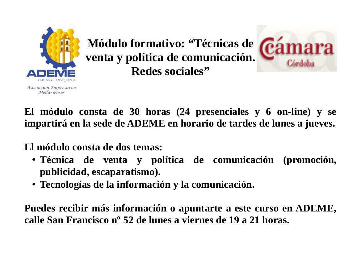 Inicio > Cursos de formación > Modulo formativo: "Técnicas de venta y política de comunicación. Redes sociales"